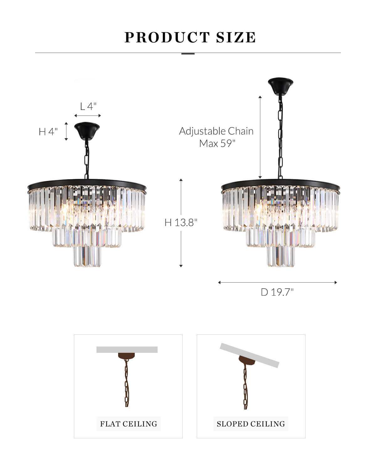 • Light Source: E12 x 4 Bulbs (Max 40W, Not Included).