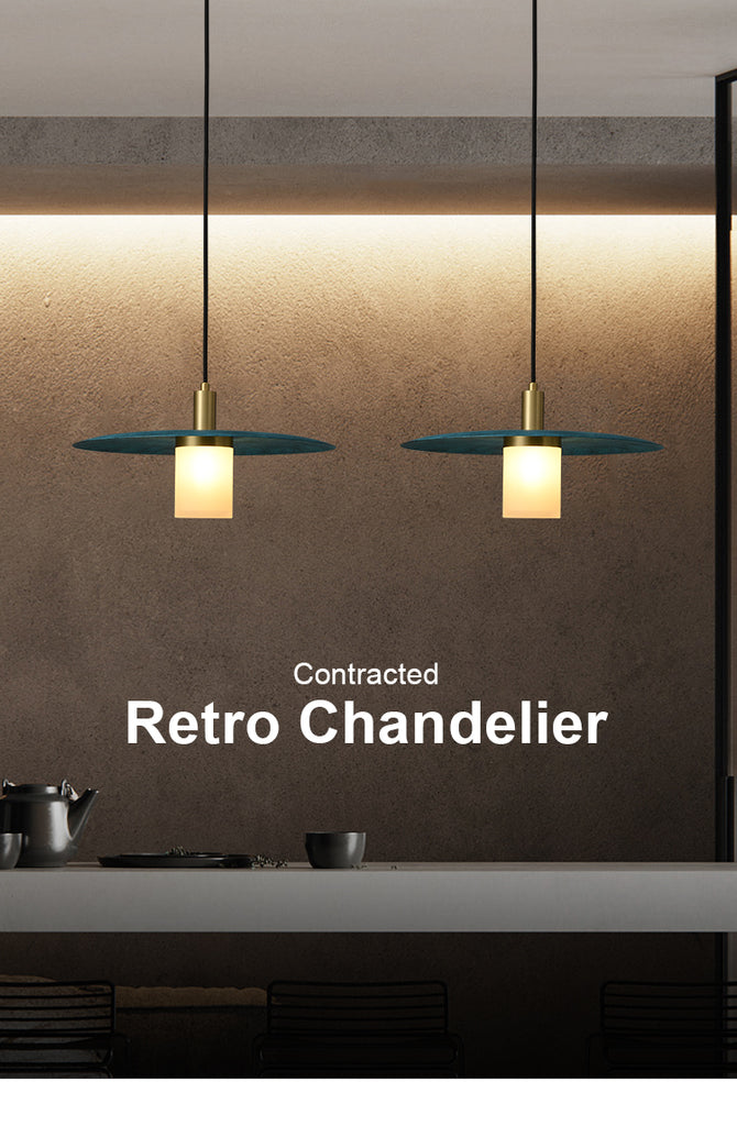 The lampshade is made of deep-sea blue metal and acrylic lampshade. The role is to make the light more soft and not dazzling. 3 different sizes of disks make the lamps and lanterns more hierarchical. Ceiling canopy and fittings are crafted from solid brass