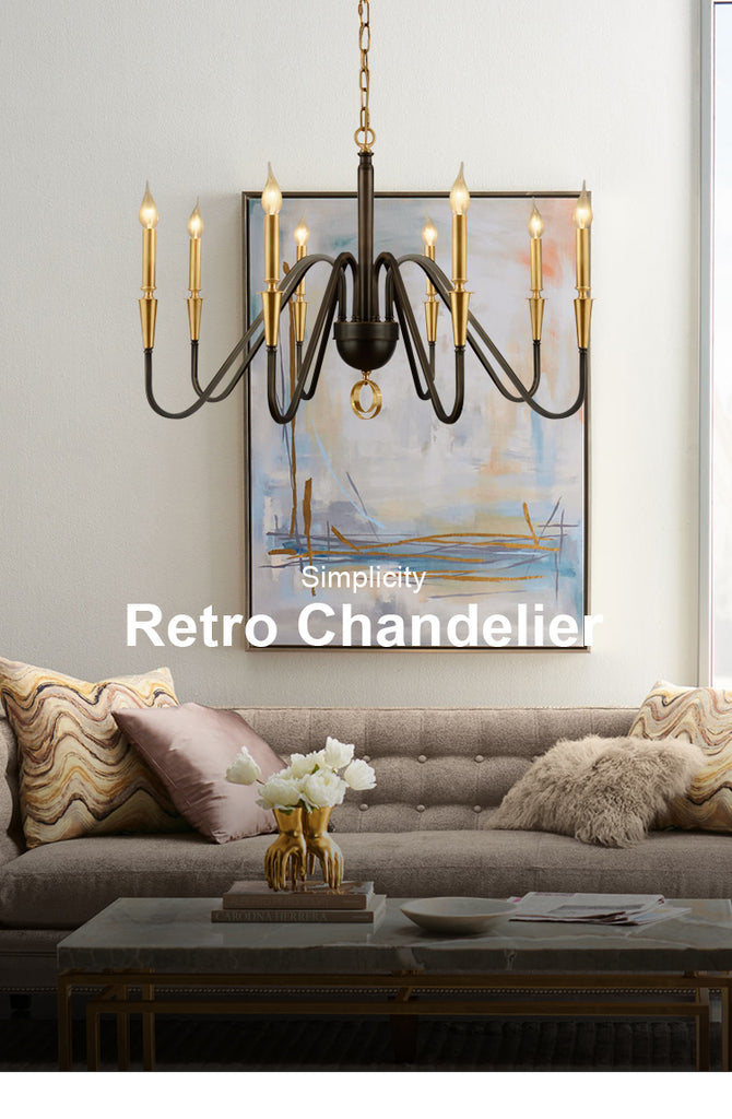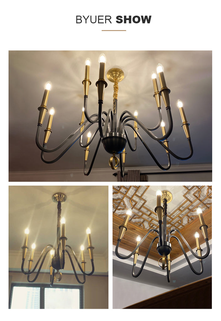 The combination of rich texture and subtle details makes this Candlestick chandelier have a sense of age that attracts your eyes. A candle shaped lamp body is hung from a copper hanging chain. The curved lamp arm and the embellishment at the bottom of the lamp add a real sense of rural revival to this lamp and show a retro appearance. Elegant design complements the antique dining table or simple interior decoration.